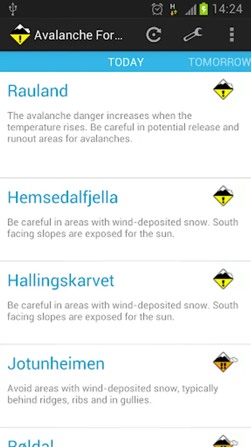 The app makes it very simple to check the current avalanche forecasts for your area.