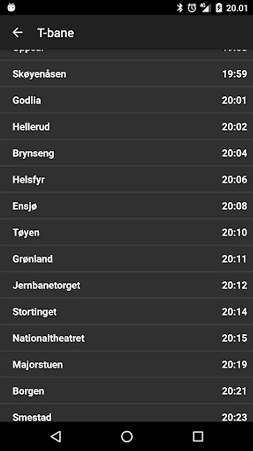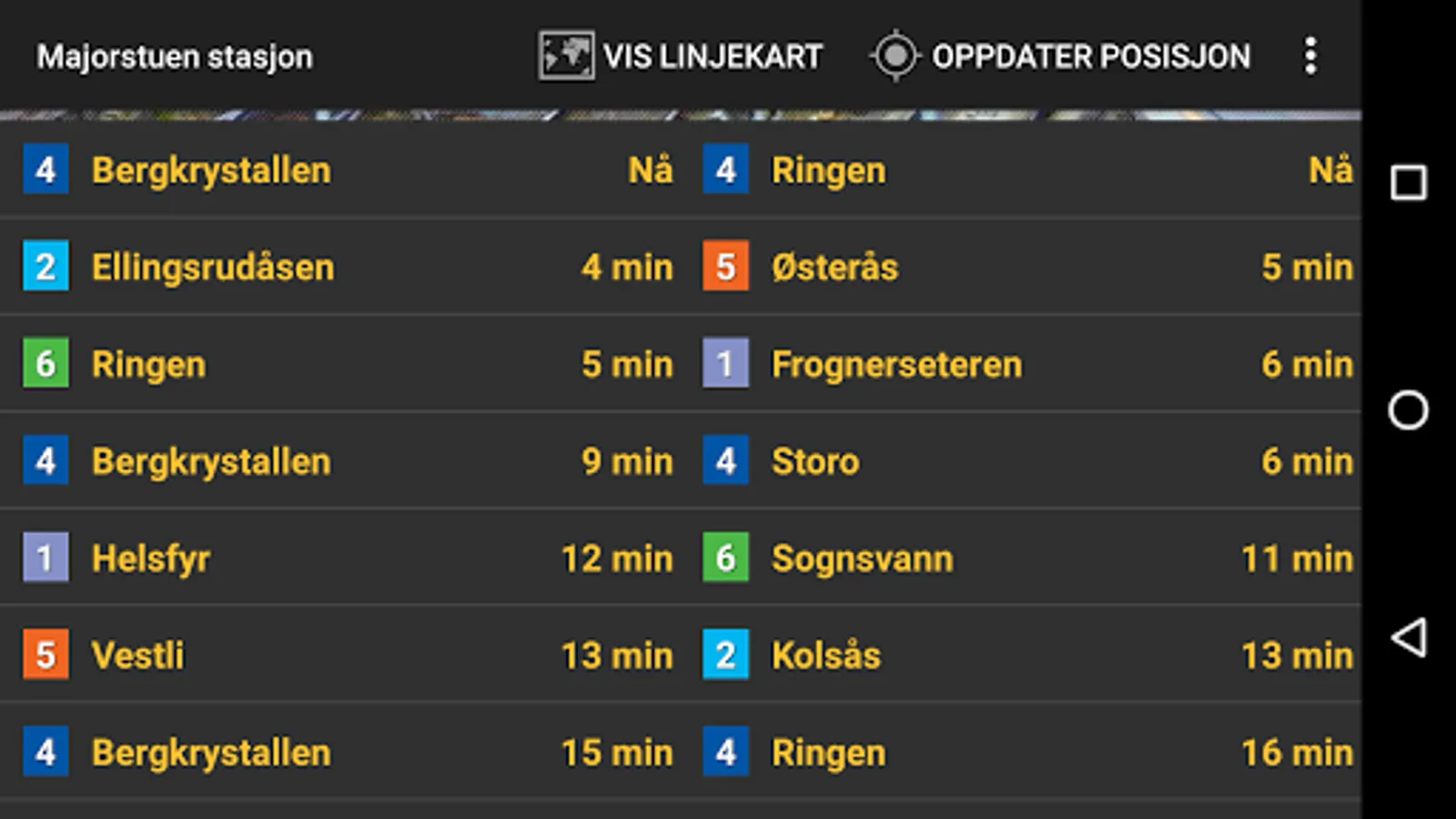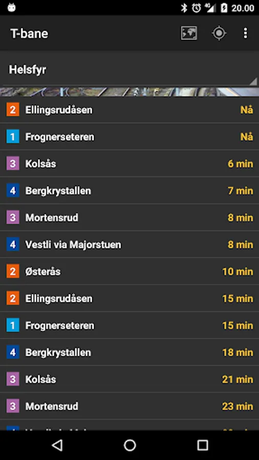 The data is fetched from Trafikanten in Norway (Ruter).