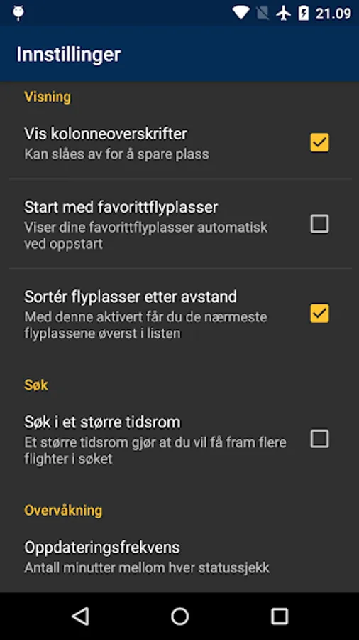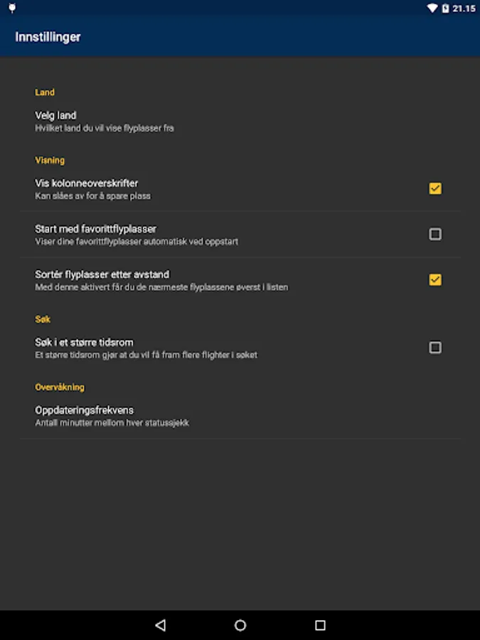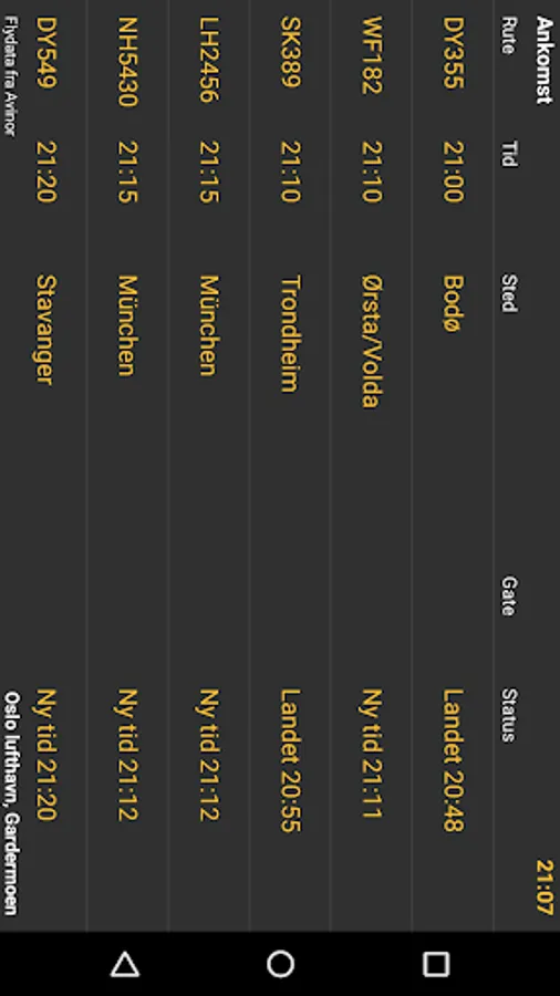 This app gives you updated departure and arrival times for airports all over Norway, presented to you in a simple manner. Very easy to use interface.