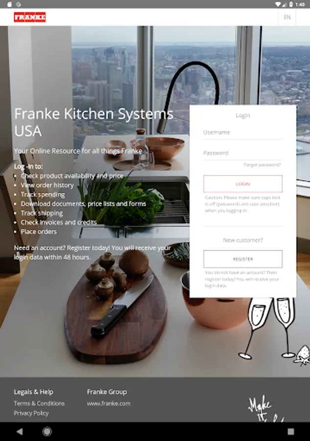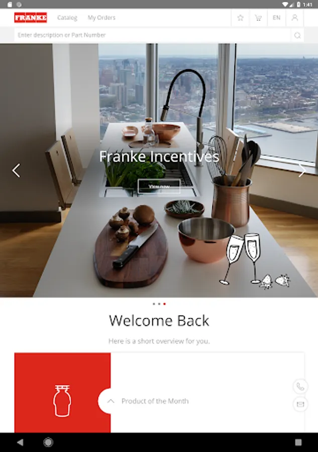 All Franke Kitchen items are now available on your mobile device. You are able to find items and add them to your wish list or order them while you are on the go . The information can also be found on the Franke Kitchen US website and you can finish the order either on the mobile app or on the web. The app allows you to find items by either catalog or keyword search.