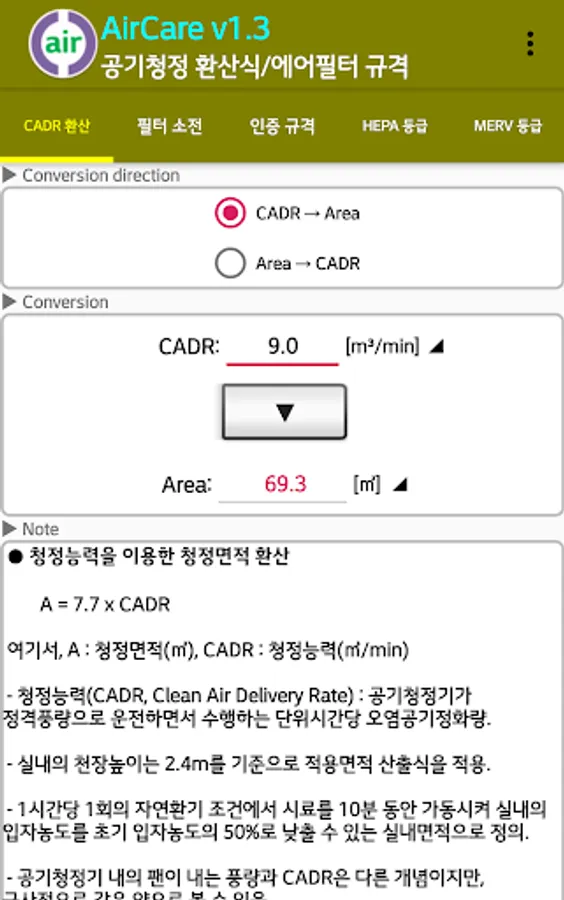 1) Calculation of the indoor area that can be cleaned by the effective air volume