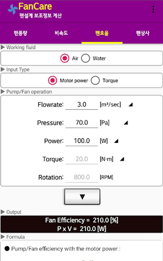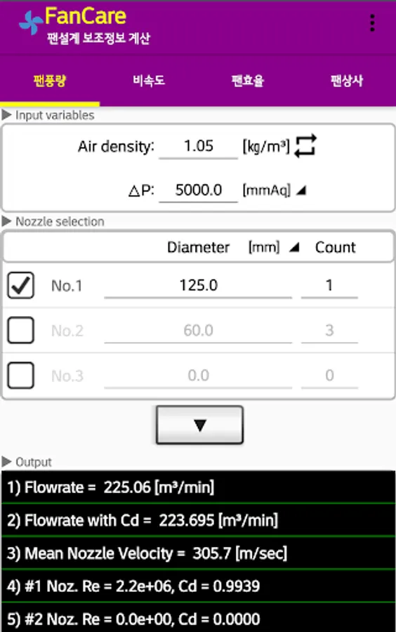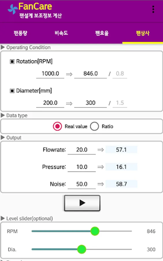 4) Estimating the amount of change in air volume, pressure, and noise according to the change in fan condition (number of rotations, diameter)