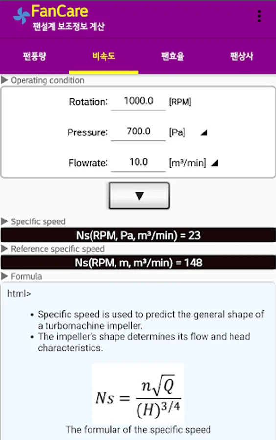 2) Selecting a suitable fan type using the fan operating conditions (rotational speed, pressure, air volume)