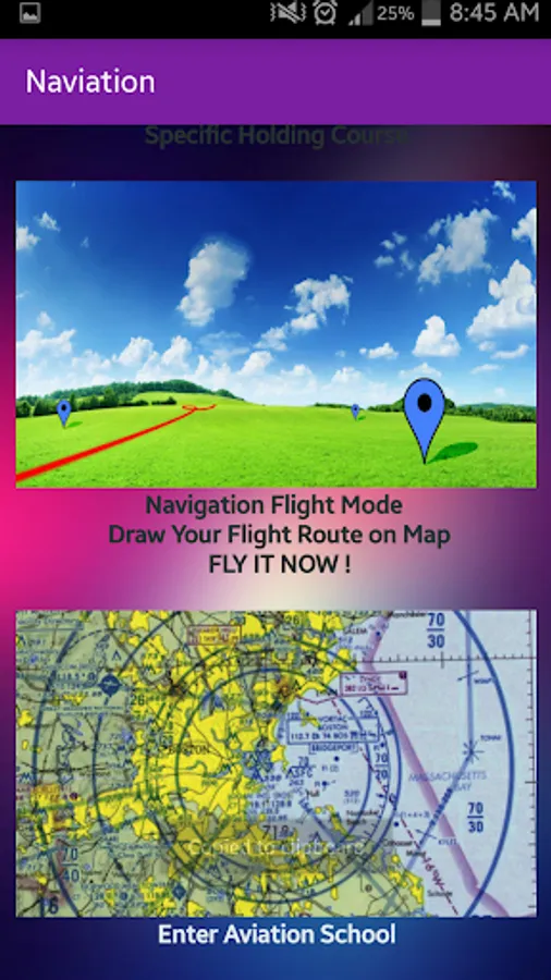 Naviation will allow you to draw your flying route on a real map , and you will be able to fly it with all data and information you need ..