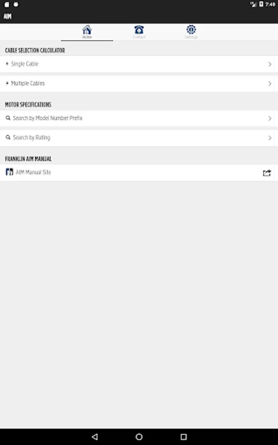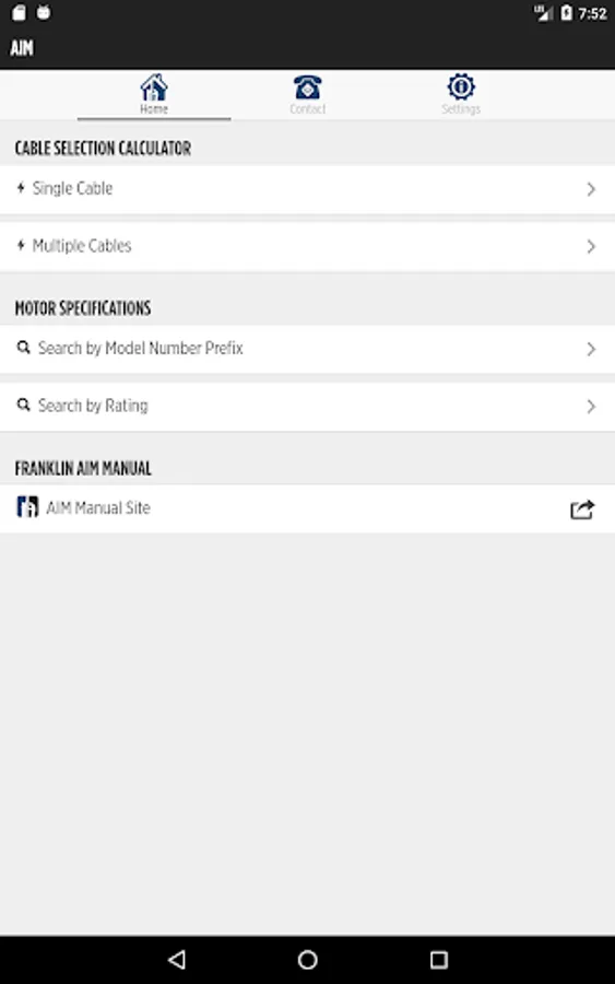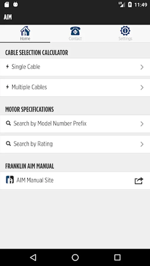 The AIM app allows for quick access to Franklin Electric motor specifications and includes easy-to-use cable length and gauge calculators for single- and multiple-cable installations