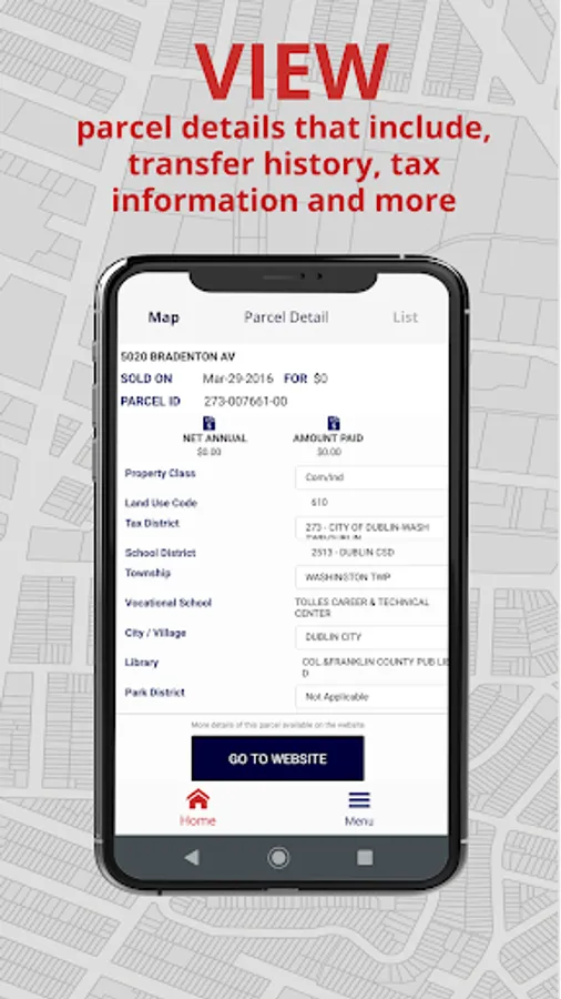 The Franklin County Auditor’s Office mobile app allows you to quickly and easily research Franklin County, Ohio real estate properties, property values, transfer histories, taxes, and photos. You can research by address, owner, parcel, or interactively on a map. You can even find properties nearby using your current location.