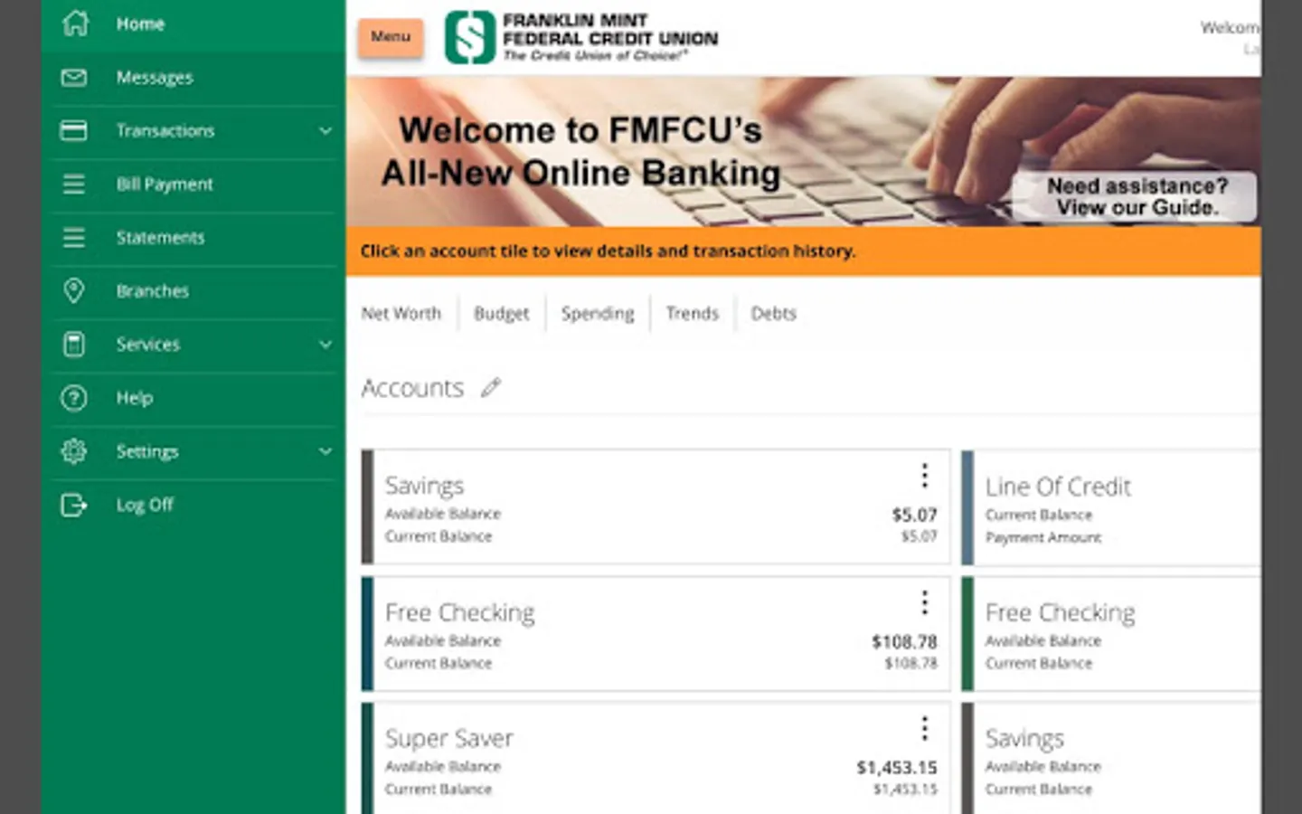 - With Money$mart, view external accounts, create budgets, view your spending, net worth, and assets/debts.