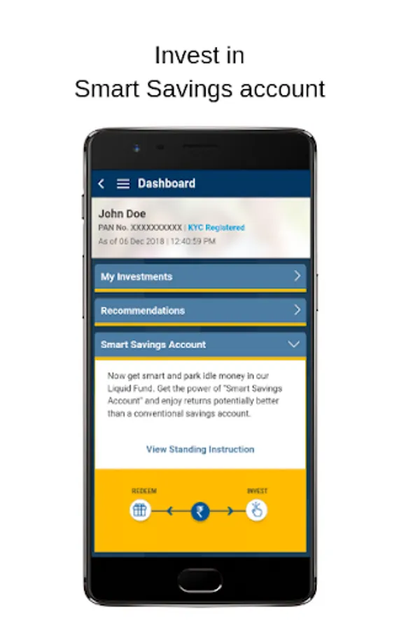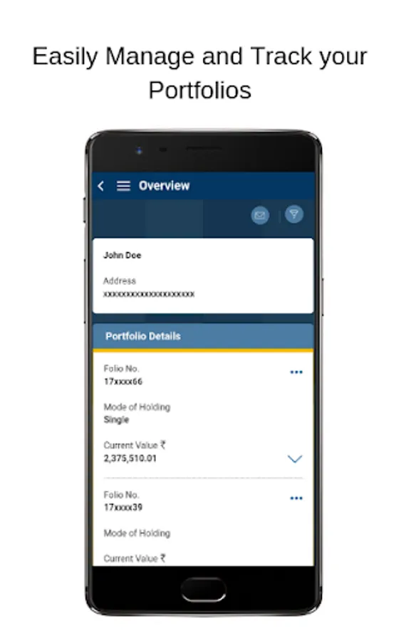 The app allows you to monitor and track your investments efficiently., You can view account wise returns, current cost of investments, current value of investments and dividend if applicable for the same. You can also step-up your investment amount easily. Also, view the NAV of mutual funds as required.