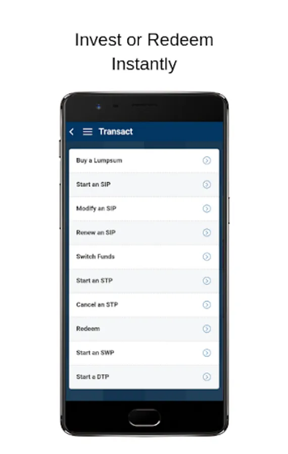 You can start a SIP in Mutual Fund or Lump sum investment in easy steps. Also, you can redeem, switch funds or modify your existing SIPs if required instantly on the app.