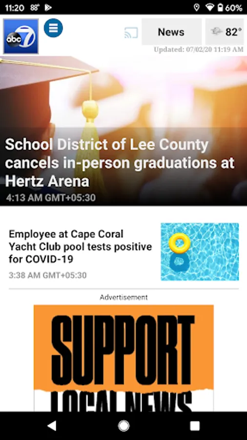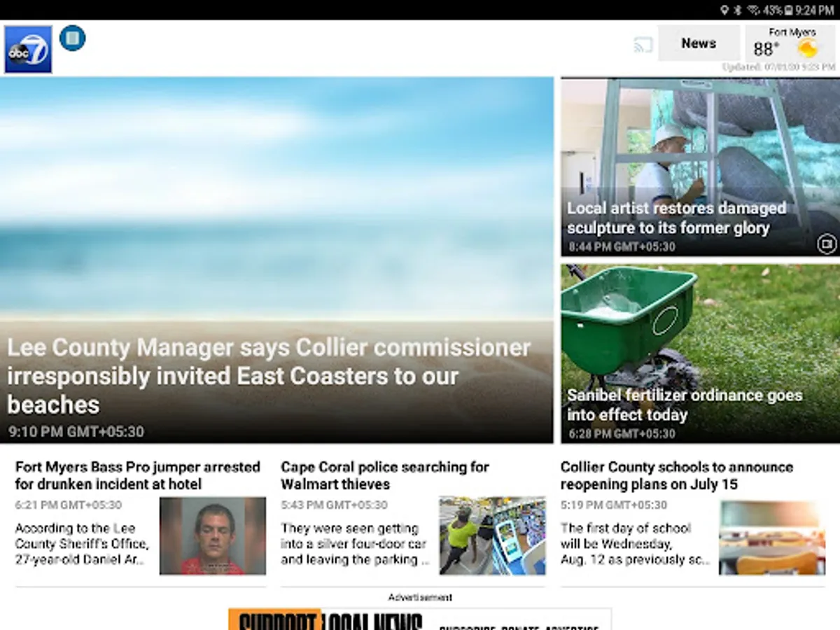 Get More of the latest news, weather and sports wherever you go with the ABC7 News app. Get the best features from the ABC7 newscast and website in experience that is a must on your mobile device. It makes viewing and sharing the news easy. With a few simple steps, you can read and watch the latest news or share it with family and friends by e-mail, text message and even post to Twitter. Whether it’s severe weather, breaking news or learning you’re a lottery winner by viewing the latest numbers, the ABC7 News app keeps you in-the-know while you’re on-the-go. The app includes: