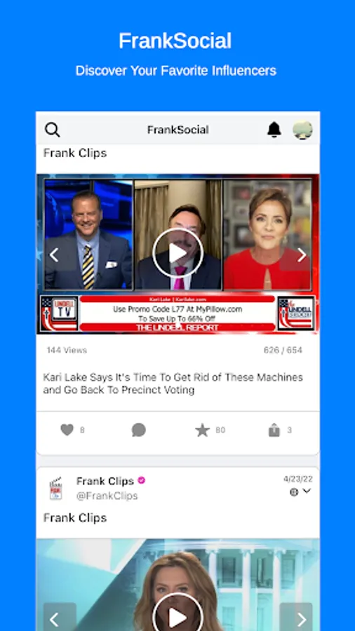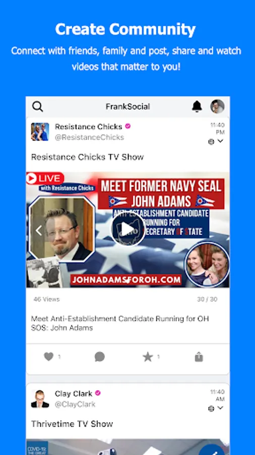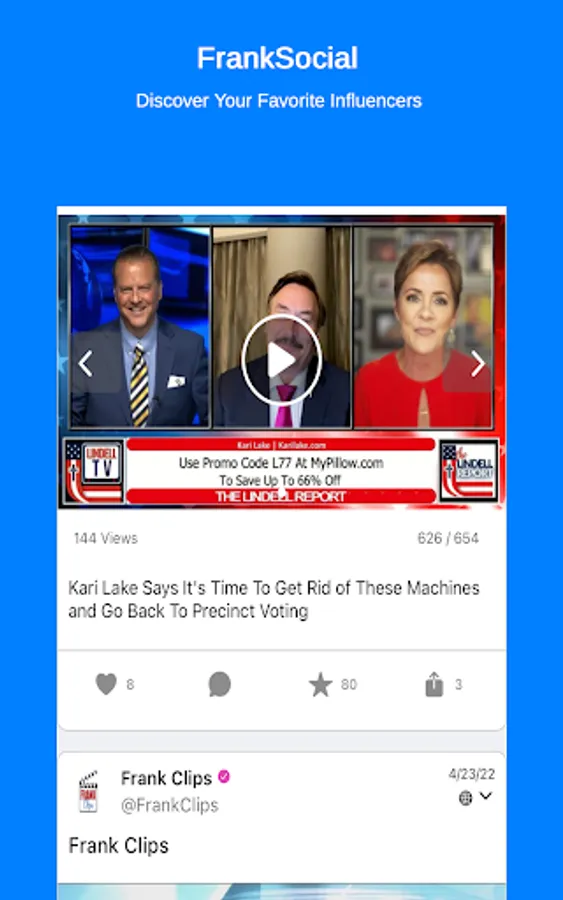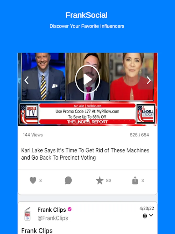 FrankSocial, the voice of free speech, is the platform for Americans who want to defend life, liberty, and freedoms that have marked America as the longest-running Constitutional Republic in the world. On FrankSocial, you can post videos, distribute news and information, and find community and fellowship with like-minded Americans. FrankSocial is a home for major influencers, micro-influencers, and average Americans who want to share in the constitutional right of freedom of speech and expression. We hope you will join our community and let freedom ring.