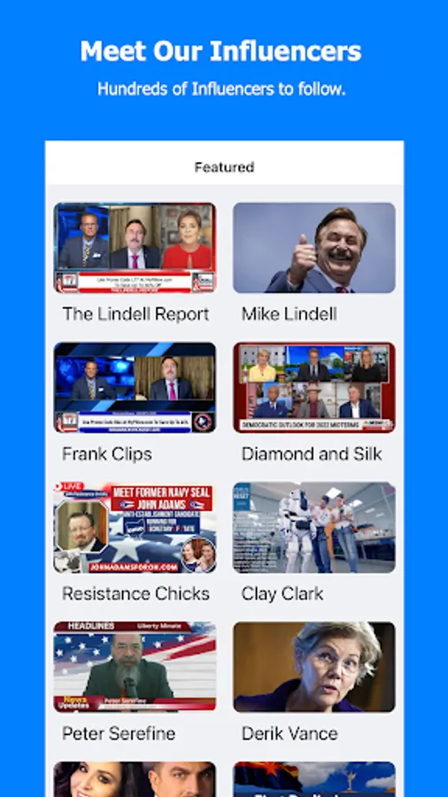 Featured - Here is where you can view an Influencers channel and decide if you want to add them to your Home feed. We have hundreds to choose from already and are constantly adding more!