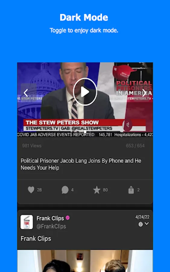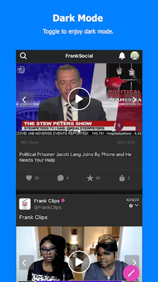 FrankSocial combines all the best features from mainstream social media without manipulation and censorship. Let your voice be heard. Join the conversation by posting your thoughts, photos, news stories and videos. Connect with your friends, influencers, and others like you that want to stay up to date, informed and uncensored.