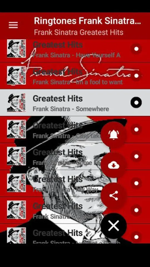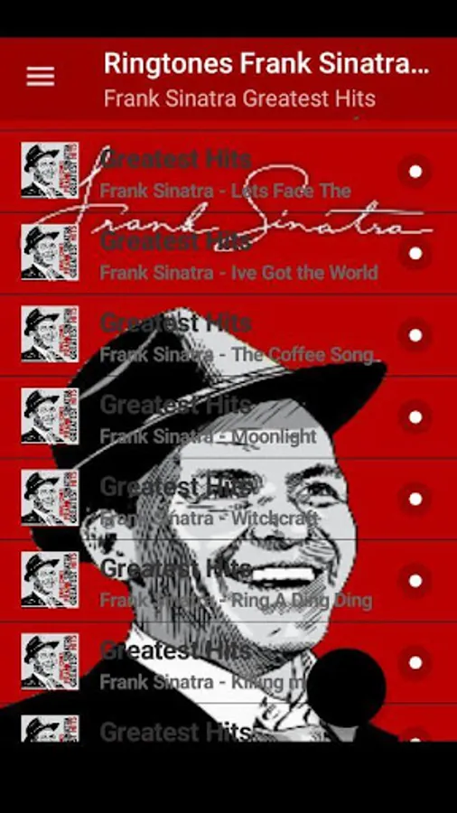 Frank Sinatra Greatest Hits ringtones are the new version specially designed so you can listen to all the most prominent songs quickly and easily. Download our application and start living your day in Frank Sinatra.