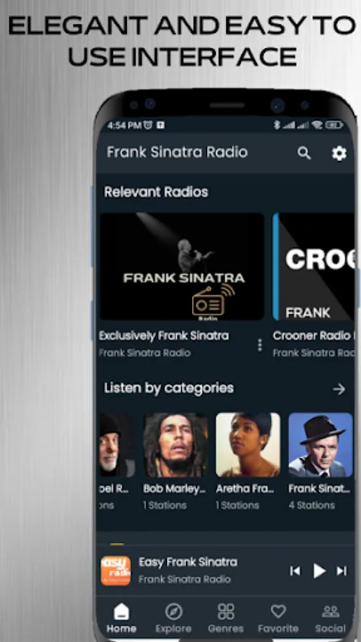 • Frank Sinatra Radio gives you a simple and efficient search, you can search for your favorite station