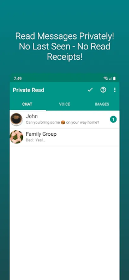 Private Read is a lightweight & simple app that allows you to privately read your WA messages without appearing online & without sending read receipts to their senders.