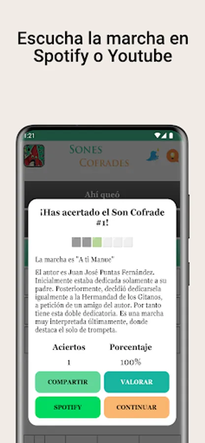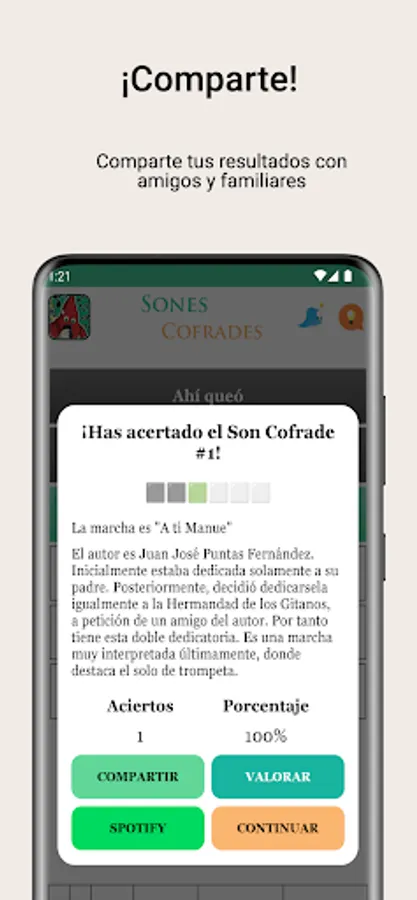You will be able to share your results and demonstrate everything you know with your friends and acquaintances. In addition, you can listen to the march later on Spotify if you wish.