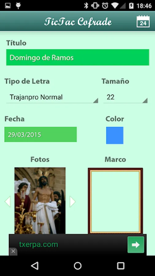 With TicTac Cofrade you can add reminders in the form of widgets with the day you prefer and images of your choice or galleries provided by the application. It is not an event will never happen and you will always be informed of how much longer you leave your Brotherhood.