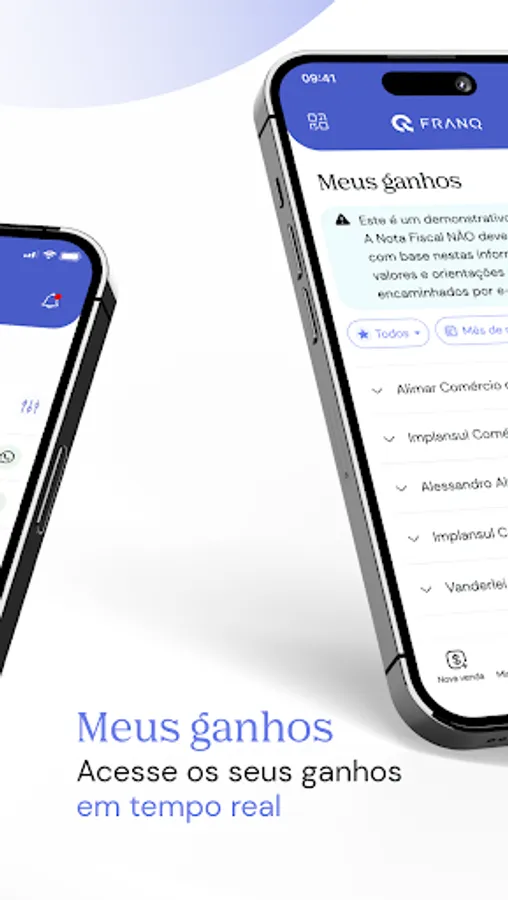 In the app, you can configure your store with personal data, your professional career and the certifications you have. In addition, you have access to all your earnings from operations already carried out - at Franq you earn per closed deal.