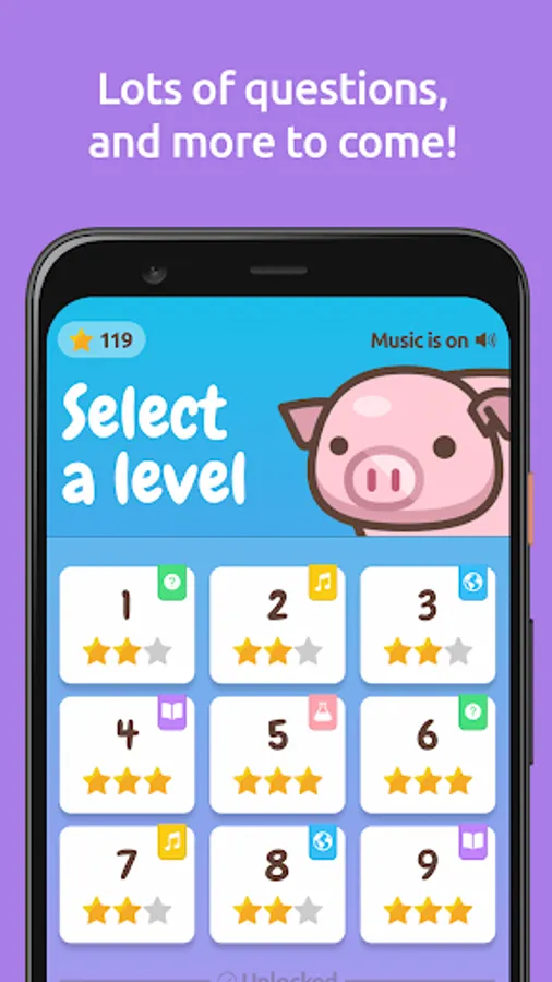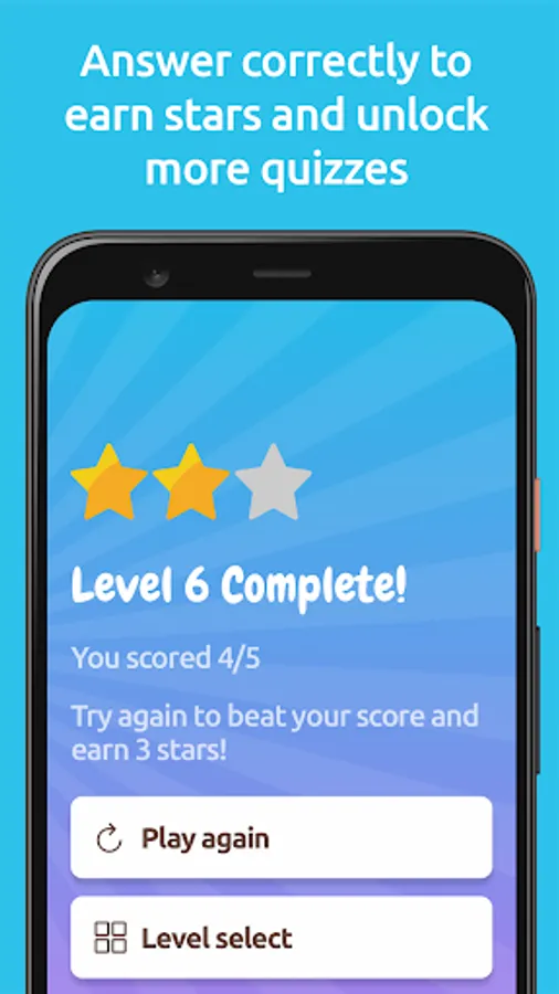 Get questions right to earn stars and unlock more quizzes.