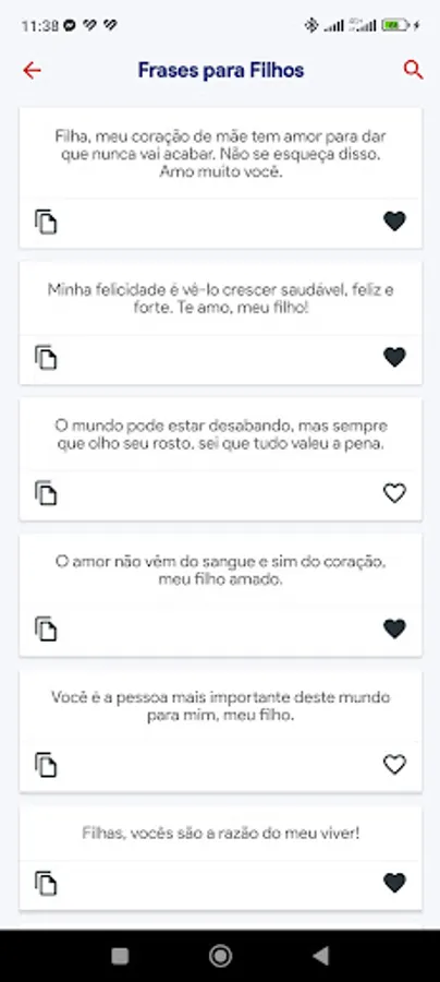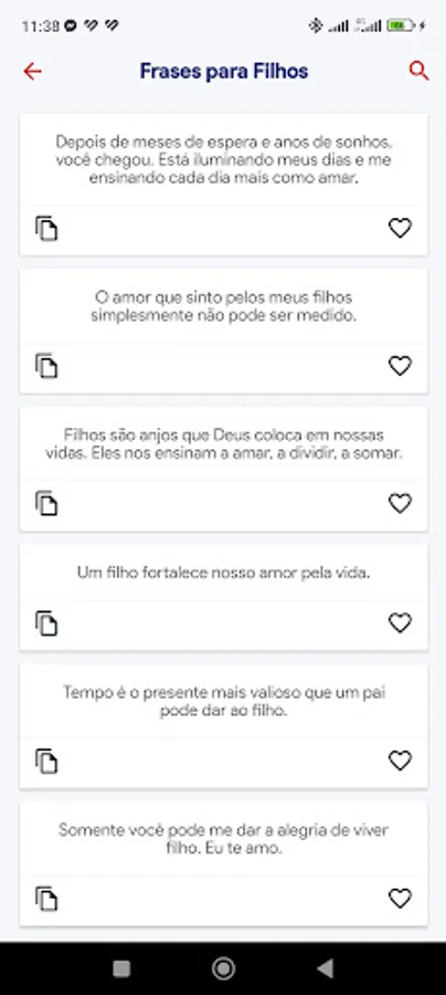 Share these reflection phrases with your sons and daughters, always share a moment of happiness with your children, giving them life lessons and also serve as a reflection. Many times, we don't know how to express our feelings to our sons and daughters. This app will help them to express their love for them very easily.