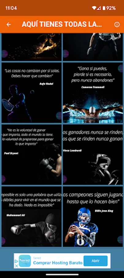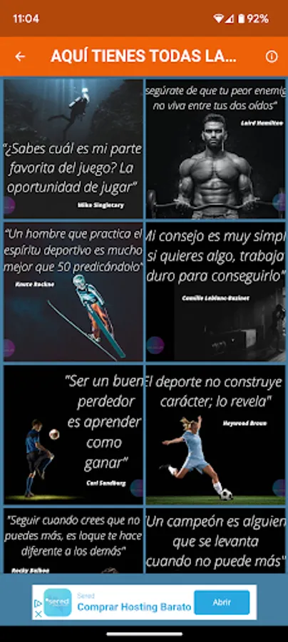 If you are passionate about sports and motivation, we have a perfect application for you! It is a platform where you can find and share motivational images, specifically focused on sports, along with famous quotes from some of the most recognized athletes in the world.