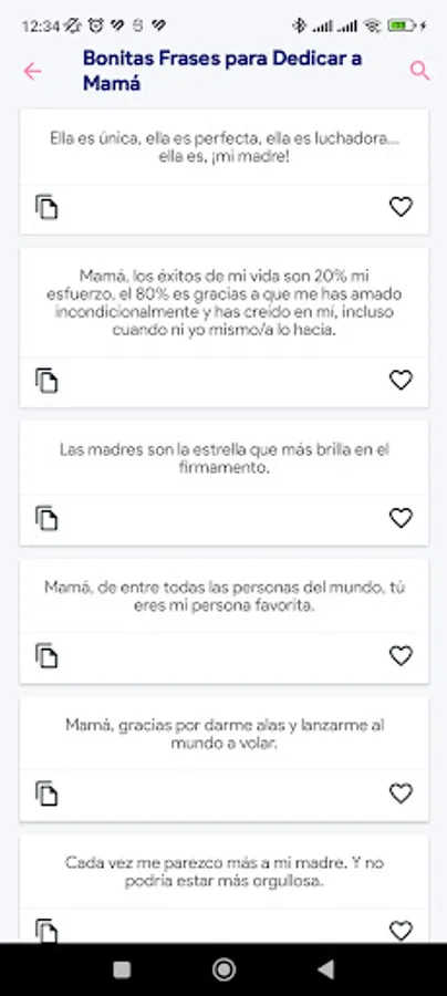 Phrases for Mom, is an app with beautiful messages and texts to send her: on her anniversary and birthday, words of love for every day, dedications, beautiful thoughts, Happy Mothers Day expressions, I love you and much more.
