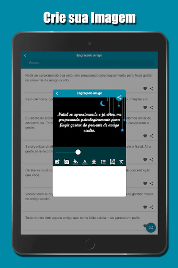 You can edit status phrases and create images to publish in your stories. You will receive phrase of the day recommendations that you can share on your status or wherever and whenever you want.
