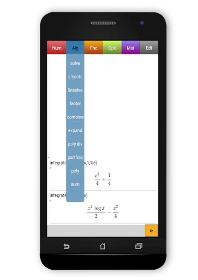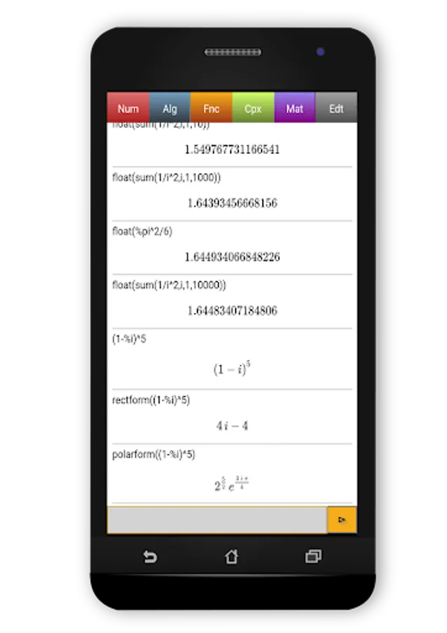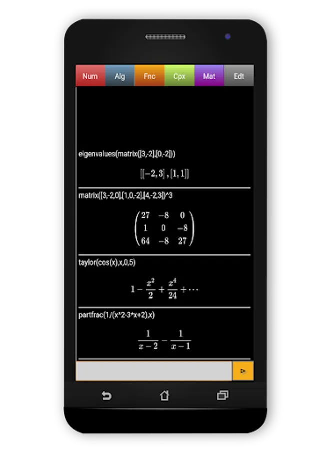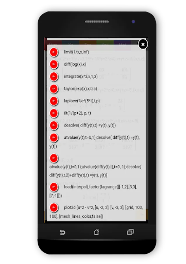 This application contains all the necessary functions : limits, differenciation, intégrals, Taylor series, differentials equations, Laplace transforms, matrix's operations etc.