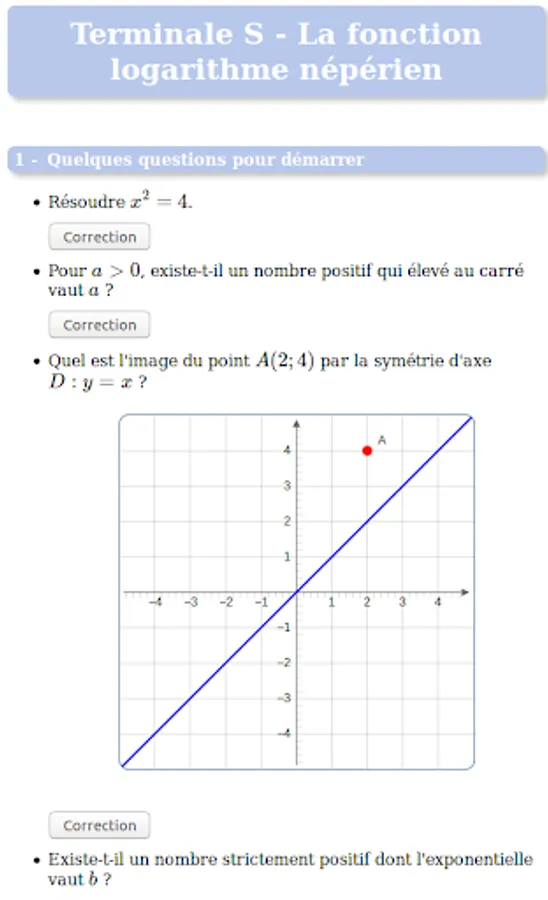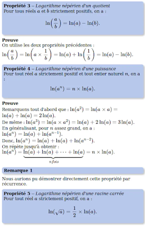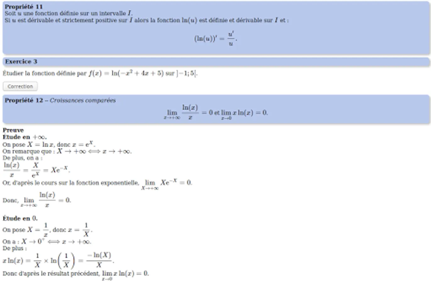 It begins with the first definitions and properties concerning the function ln. Then studied the various algebraic, graphical and analytical properties (limits, derivative).