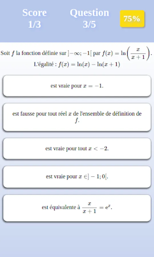 This application contains a quiz and a terminal S during the Napierian logarithm function.