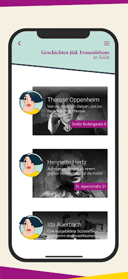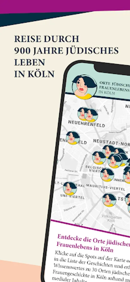 Go on a multimedia search for clues with your smartphone and discover the places of Jewish women's life in Cologne from the Middle Ages to modern times. Learn interesting facts about 30 places of Jewish women's history in the city area on the basis of audio content, texts and images.