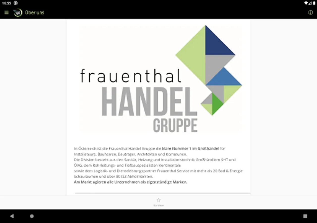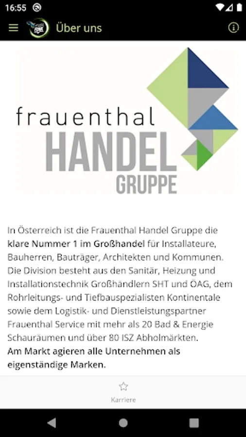 The group consists of the plumbing, heating and installation technology wholesalers SHT and ÖAG, the piping and civil engineering specialist Continental and the logistics and service partner Frauenthal Service with more than 20 bathroom & energy showrooms and over 80 ISZ (Installateur Service Zentrum) cash & carry stores . All companies are part of the group, but act as independent brands towards their customers.