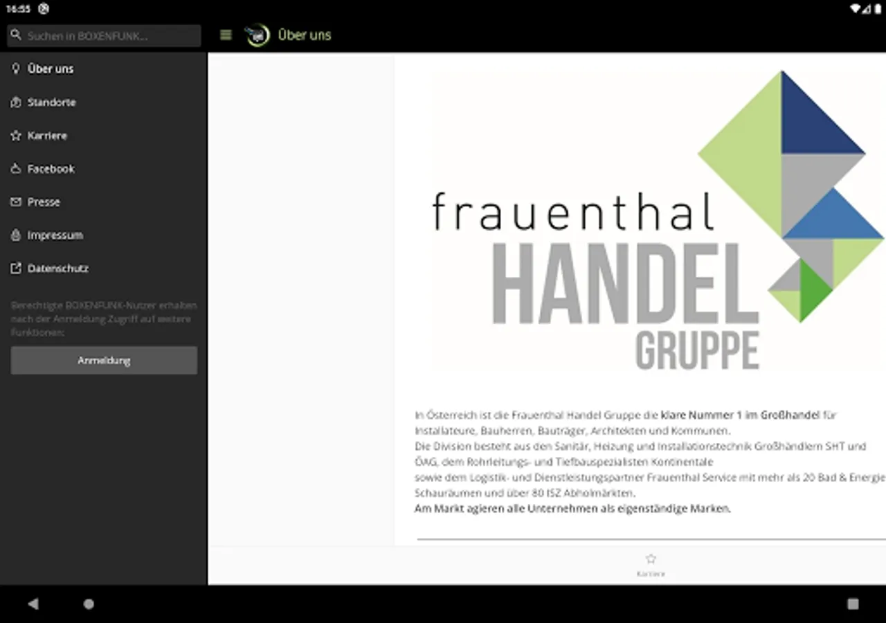 As the market leader, the Frauenthal Handel Group appears with the sporting dynamism and winning mentality of a successful racing team, hence the name "BOXENFUNK" for the information app.