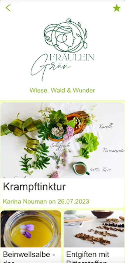 Meadow, forest and wonder. My passion, my calling. Everyone can use the powers of medicinal plants. Even if many – like me – live in the city. Natural treasures often grow right on your doorstep. On my blog Fräulein Grün, as a certified practitioner of TEH (Traditional European Medicine), I show how almost forgotten old household remedies, effective remedies and extraordinary tasting delicacies can be conjured up from herbs, roots, berries and much more without much effort. You can find more about me, all online courses, workshops, diploma courses, books, podcasts and much more on these pages. Nature begins right outside the front door and everyone can use it!
