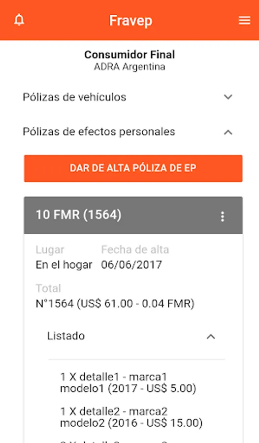 Information control system for addresses, telephones, alarms, vehicle policies, personal effects policies and claims of people insured by the Mutual Aid Fund for Vehicles and Personal Effects.