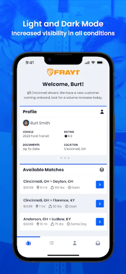 FRAYT is an on-demand delivery app that allows independent contractors to work for themselves on their own schedule. Apply to be a driver in the app today, and when approved you can start taking deliveries and making money.