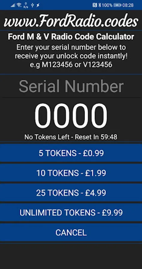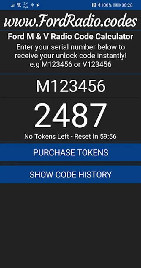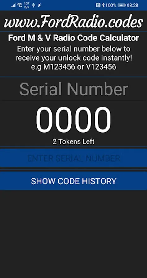 Generate the required 4 digit code by simply entering the M or V serial number of your radio into the app and receive your code instantly!