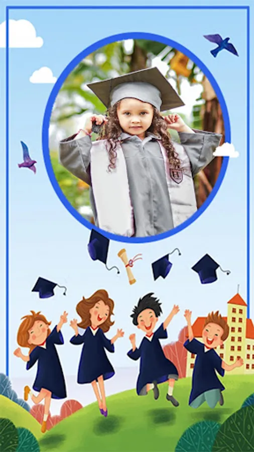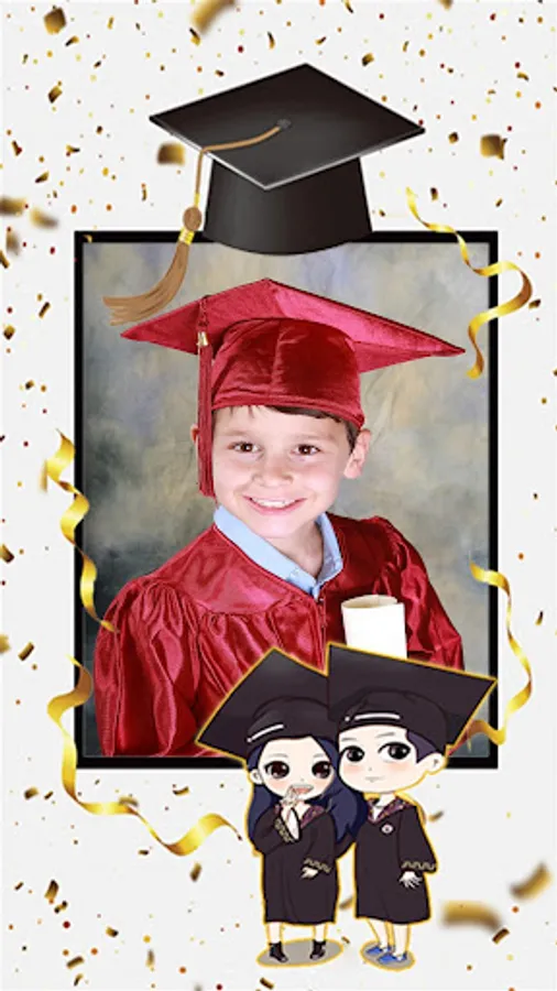 Download this editor to enjoy different frames, decorate and share your child's kindergarten graduation photo with your friends.