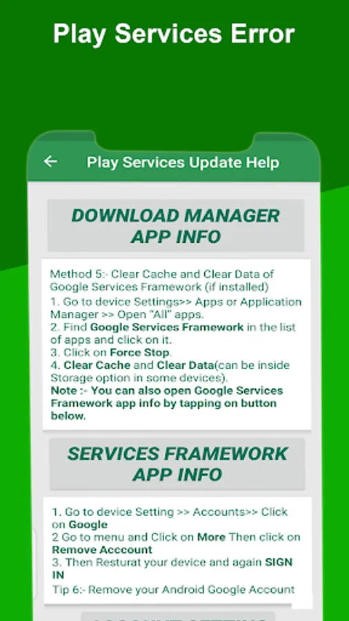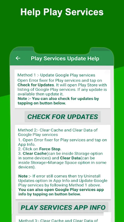The Play Services help tool help you in updating your Google Play Services and Play Store and fix error and help you this application to the most recent or factory version.