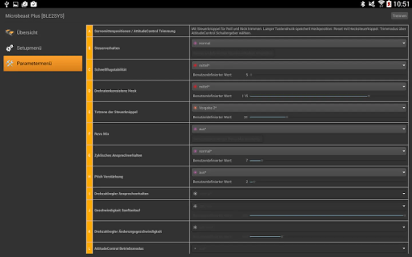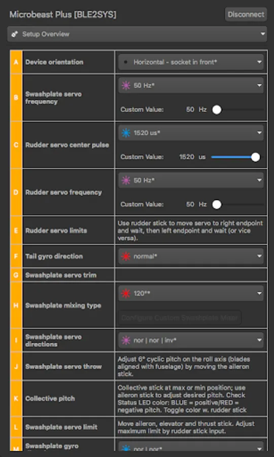 The StudioXm App can be used to configure any BEASTX Microbeast Plus, nanobeast and Spektrum AR7210BX receiver. To connect to the device a BLE2SYS Bluetooth Smart Interface is required!