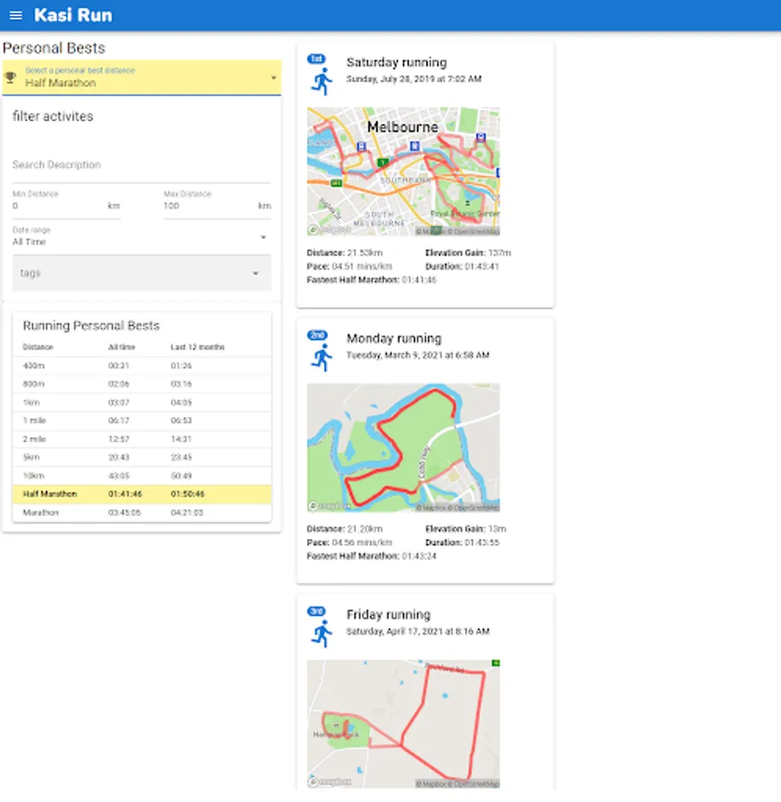 Analyse, compare and rank your runs based on personal bests across chosen distances.