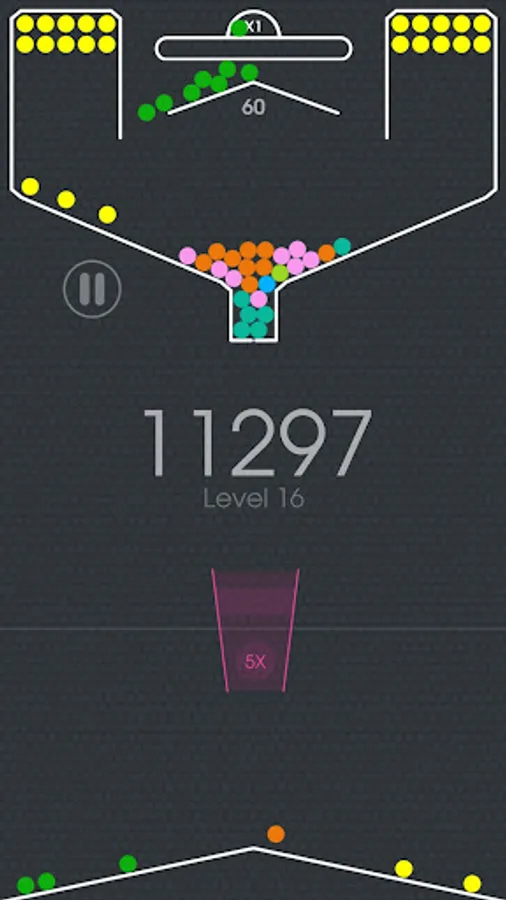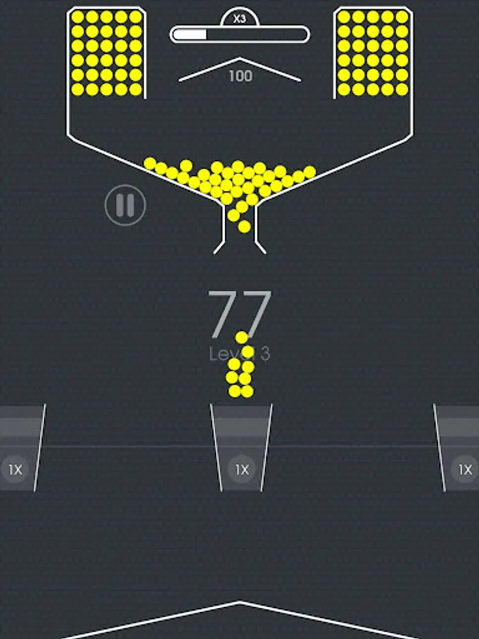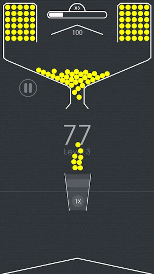 ● The goal of the game is to get the balls through the cup by tapping on the screen and releasing the balls. Each ball you get through the cup rewards you with a different amount of points, depending on the color of the cup. If the ball misses the cup, it disappears. When you lose all of your balls, the game is over.