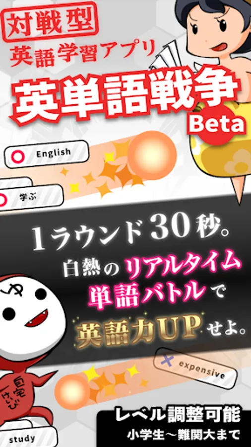 「英単語戦争」は対人対戦に特化したシンプルな学習アプリです。