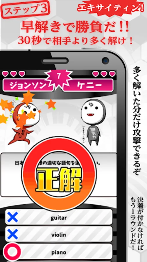 1ラウンド30秒だから、いつでも気軽にプレイできる一方、