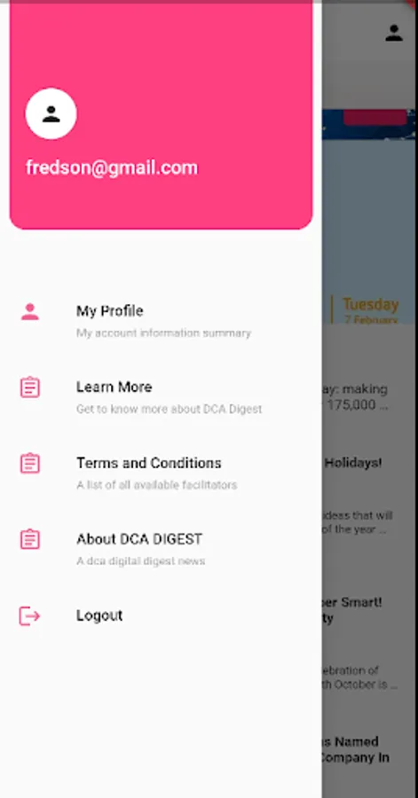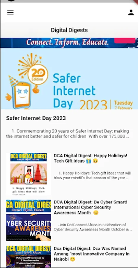 Dca Digets App is an app that gives you updates on the events happening at Dotconnect Africa group company. It scraps data from https://dotconnectafrica.org/. It also gives news updates happening in Africa about tech.