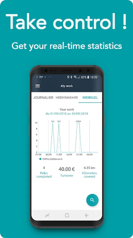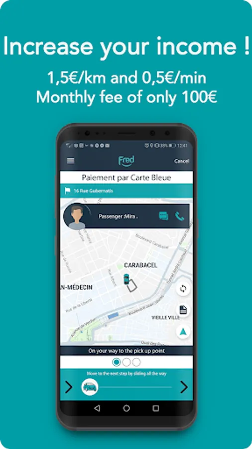Earn 1.50€/Km and 0.50€/min with a minimum fare of 10€