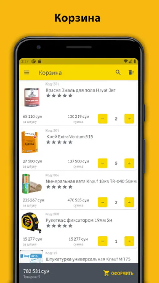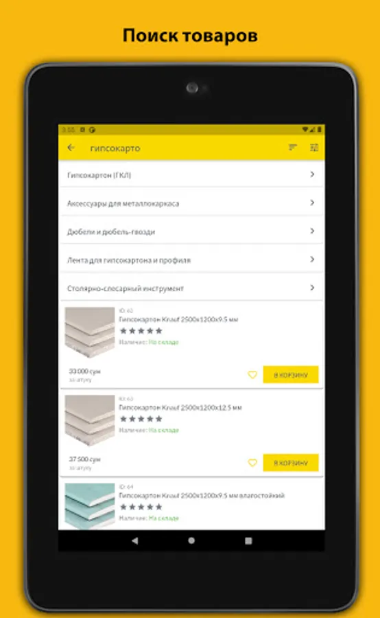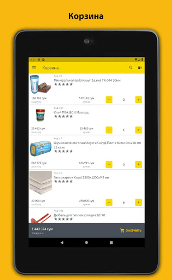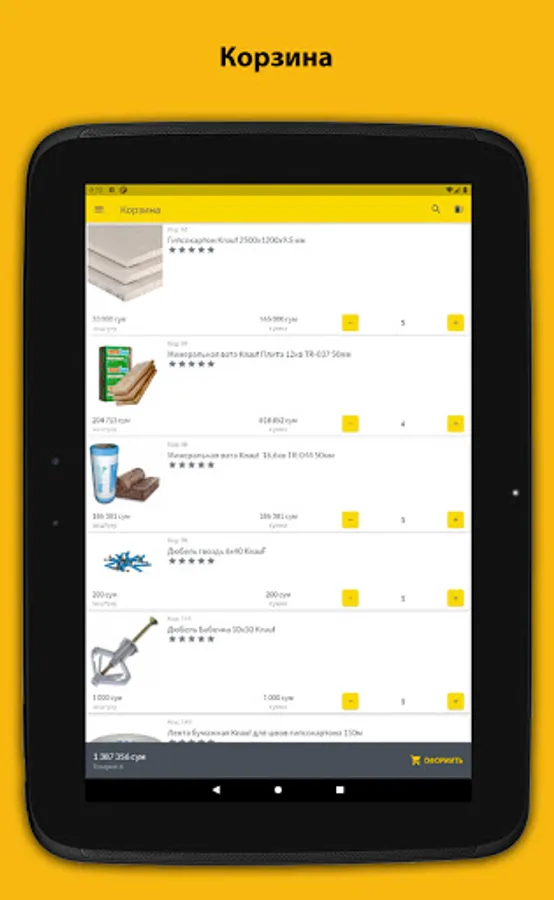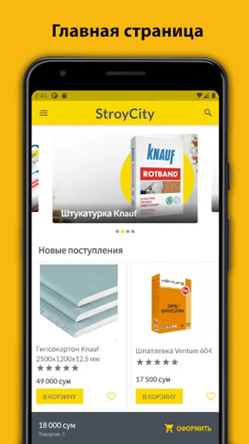 The StroyCity application presents products of the most famous brands from the world's largest manufacturers, as well as popular domestic brands. Thanks to convenient navigation, it is easy to find the desired product and put it in the basket for online ordering. We also accept orders by phone or e-mail - any method convenient for the client is acceptable to us.