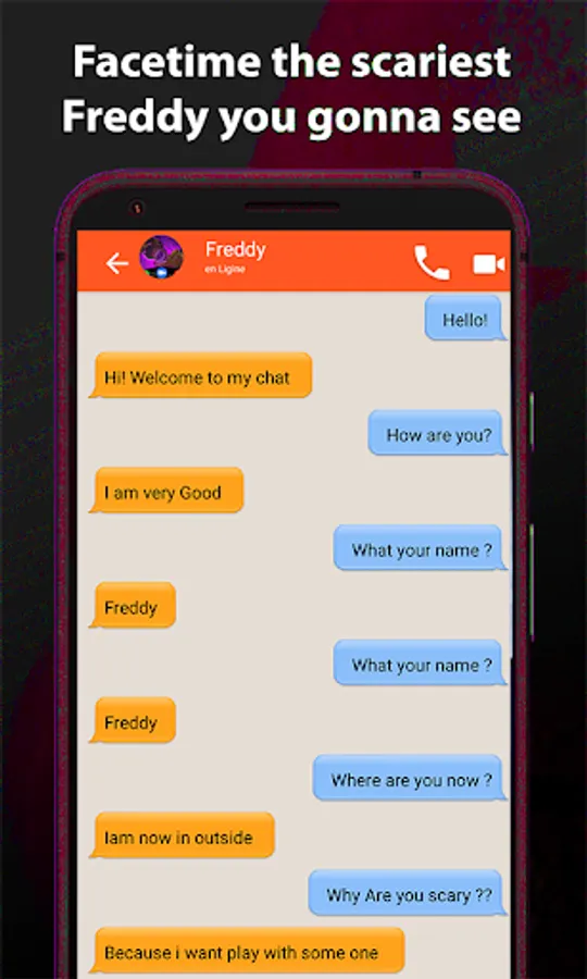 This joke application allows you to make a simulated chat and also allows you to send and receive messages from scary Freddy's.