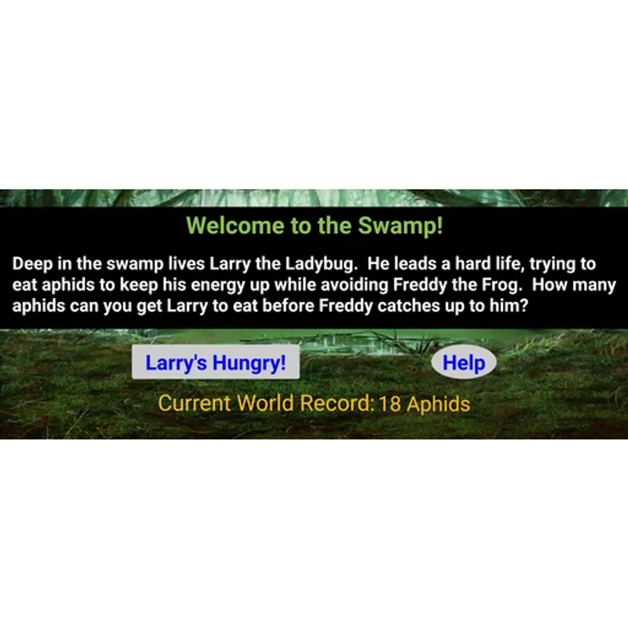 Deep in the swamp lives Larry the Ladybug. He leads a hard life, trying to eat aphids to keep his energy up while avoiding Freddy the Frog. How many aphids can you get Larry to eat before Freddy catches up to him?